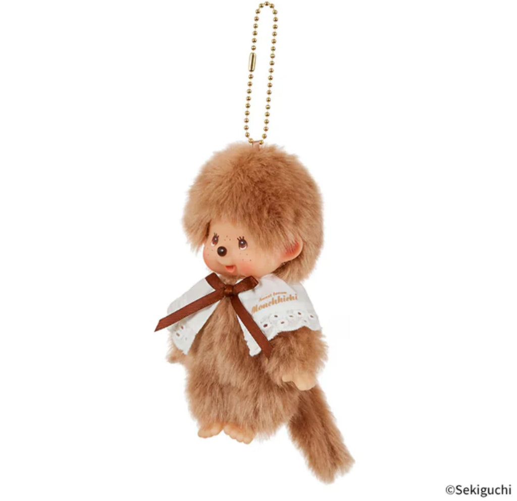 The Sweet Brown Monchhichi Keychain Plush is a limited series featuring soft pastel brown fur exclusive to the collection, with delicate face coloring to match.