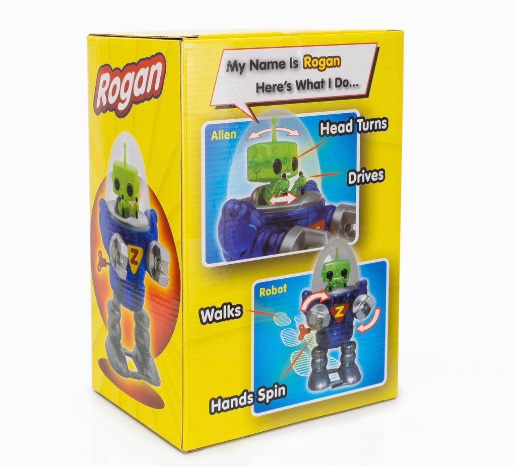 Z Classic WindUp Robot – Rogan Dynamic Action: Wind up Rogan and watch as his hands spin wildly while he marches forward like a true vintage robot hero. Alien Pilot: Look closely at Rogan’s head to spot the mischievous alien inside, peering out and controlling the robot's every move! Retro-Futuristic Design: With its vintage-inspired styling and unique details, Rogan is a perfect mix of classic charm and futuristic imagination. No Batteries Needed: Powered by a traditional wind-up mechanism, Rogan offers endless fun with just a few turns. Durable and Safe: Made from high-quality, child-safe materials, Rogan is built for long-lasting adventures with kids aged 3 and up.
