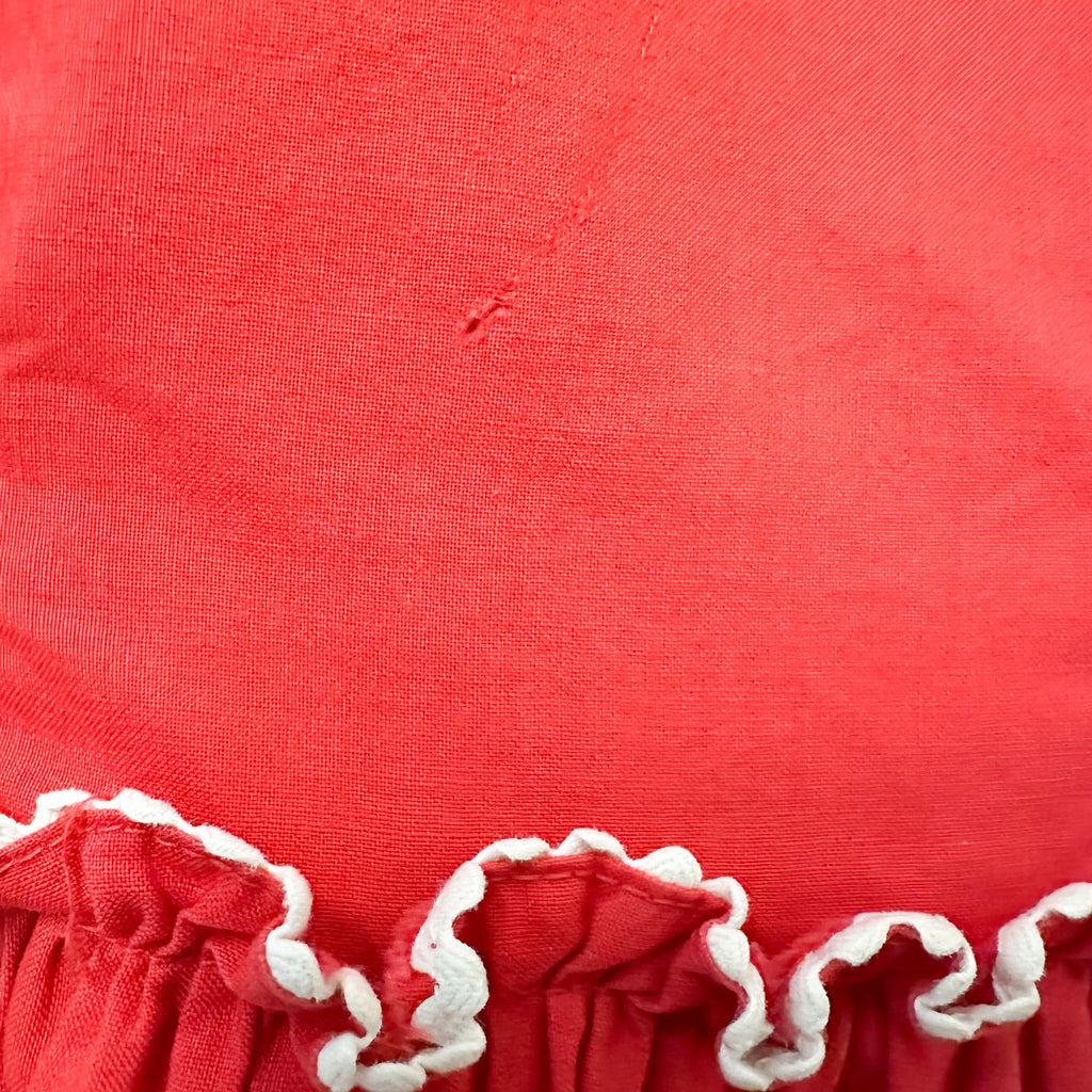 Vintage 1950s right red dress with white ric rac and crochet trims.