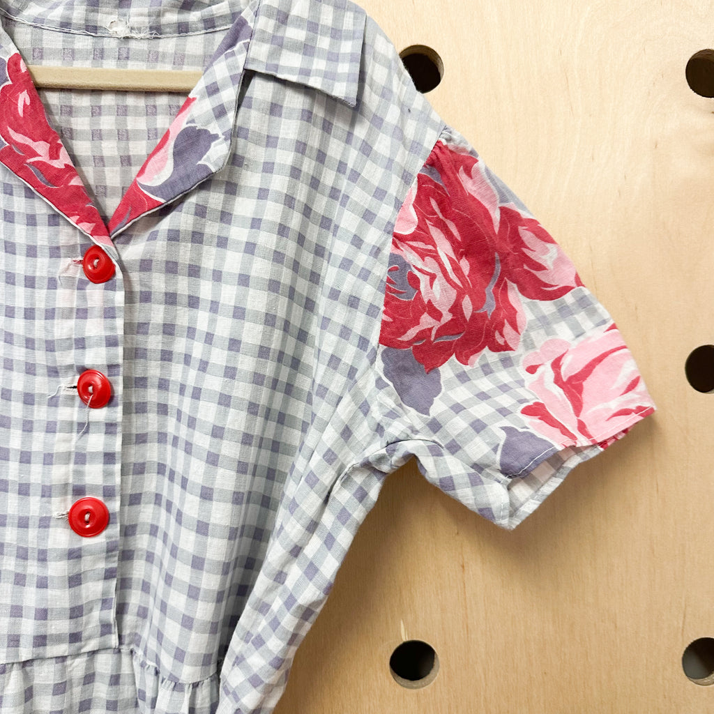 Vintage 1940s gingham and rose printed cotton day dress.