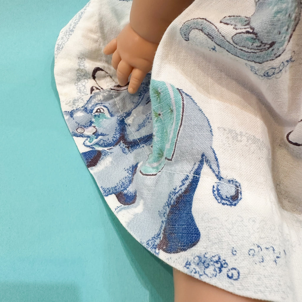 Vintage handmade circus theme novelty print doll dress.