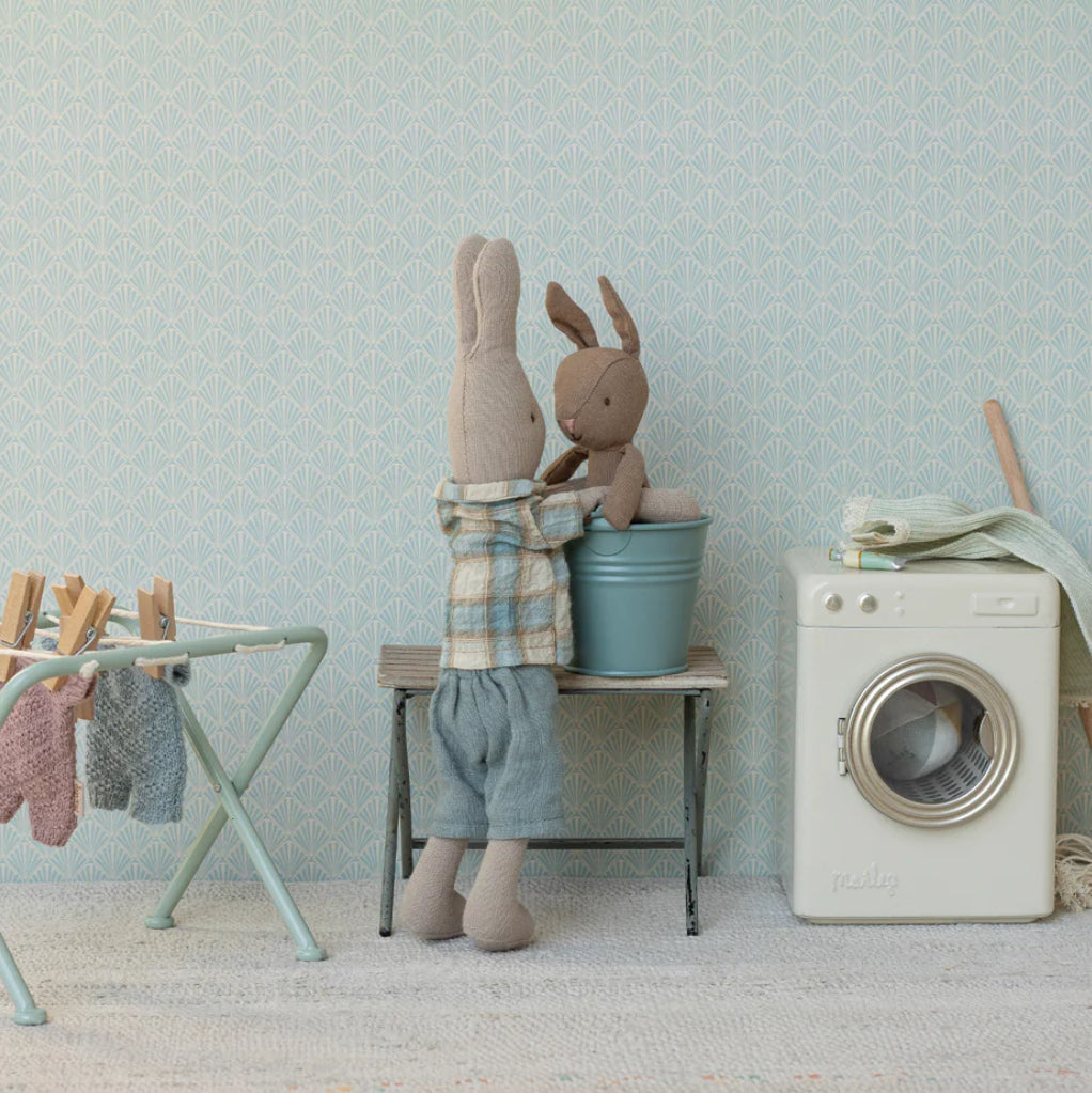 Let the storytelling and hours of play begin with this soft rabbit. It fits Maileg accessories in size micro perfectly and can live in the House of miniature dollhouse. This rabbit has magnets in hands.