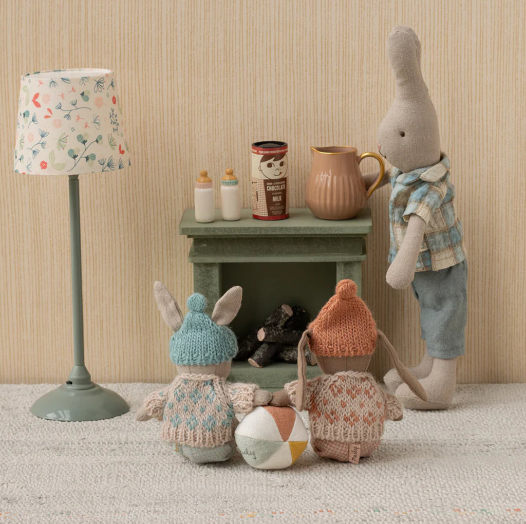 Let the storytelling and hours of play begin with this soft bunny. It fits Maileg accessories in size micro perfectly and can live in the House of miniature dollhouse. This bunny size is also perfect on the go so you can bring the magic everywhere.