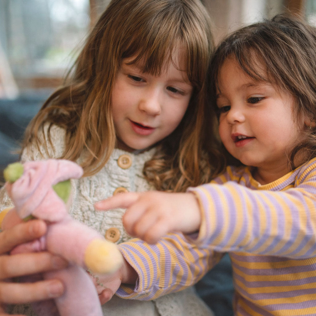 Made from organic cotton terry cloth, hypoallergenic Bioland pure new wool filling. 19cm long.