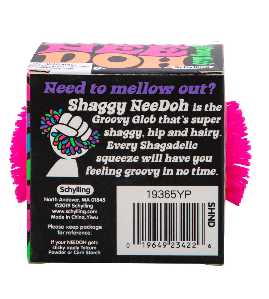 Shaggy NeeDoh is the squishy, squeezy, super-shaggy, Groovy Glob. Give Shaggy NeeDoh a squeeze, a squish, a smush, or simply pet its shaggy surface. It’ll soothe your soul and get you feeling groovy. Each Shaggy NeeDoh is filled with a non-toxic, dough-like compound that always returns back to its original shape.