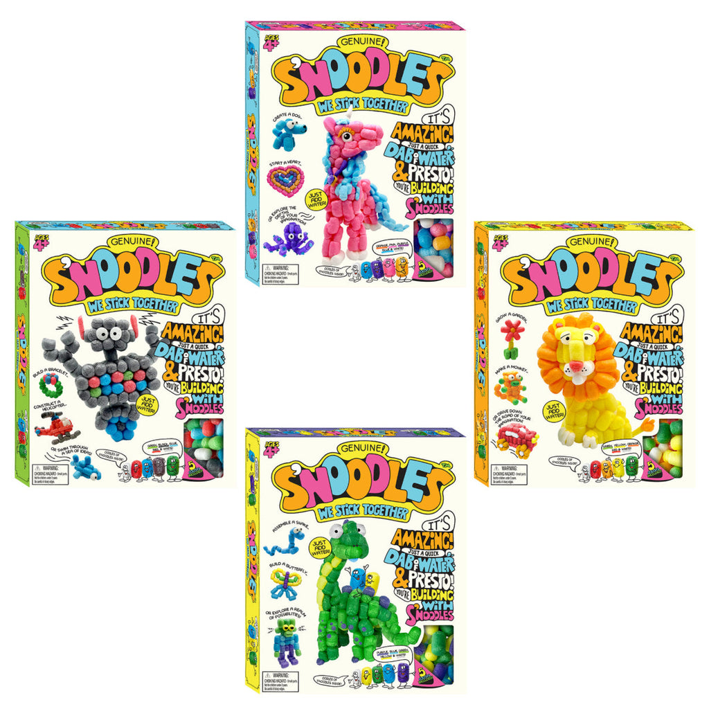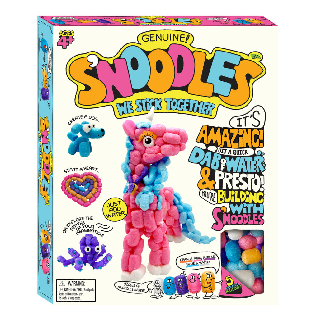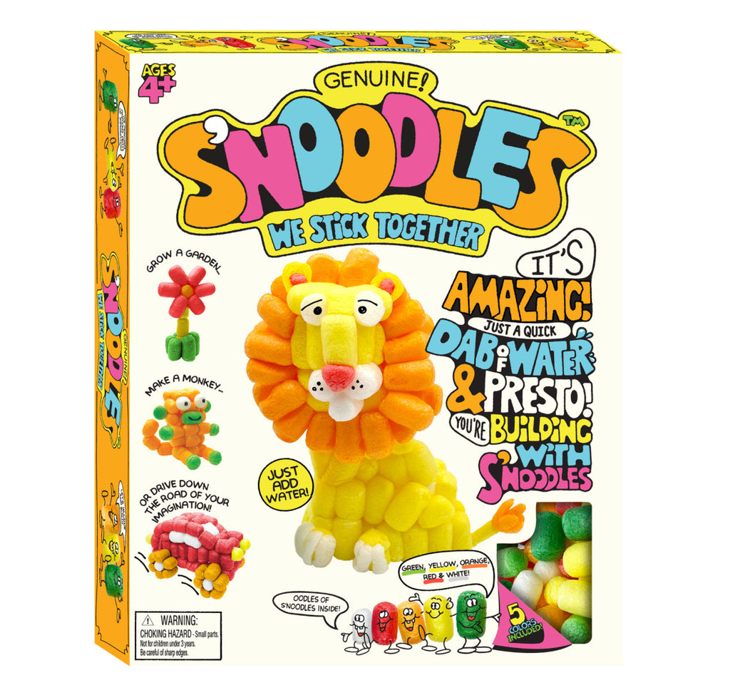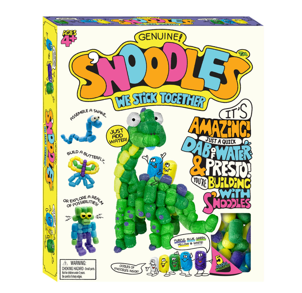 Unleash creativity with Schylling S’NOODLES, the biodegradable craft kit designed for big imaginations! Dip and stick while following the simple instructions, or experiment with your own designs. Each kit includes five fun colors. Choose from 4 designs!