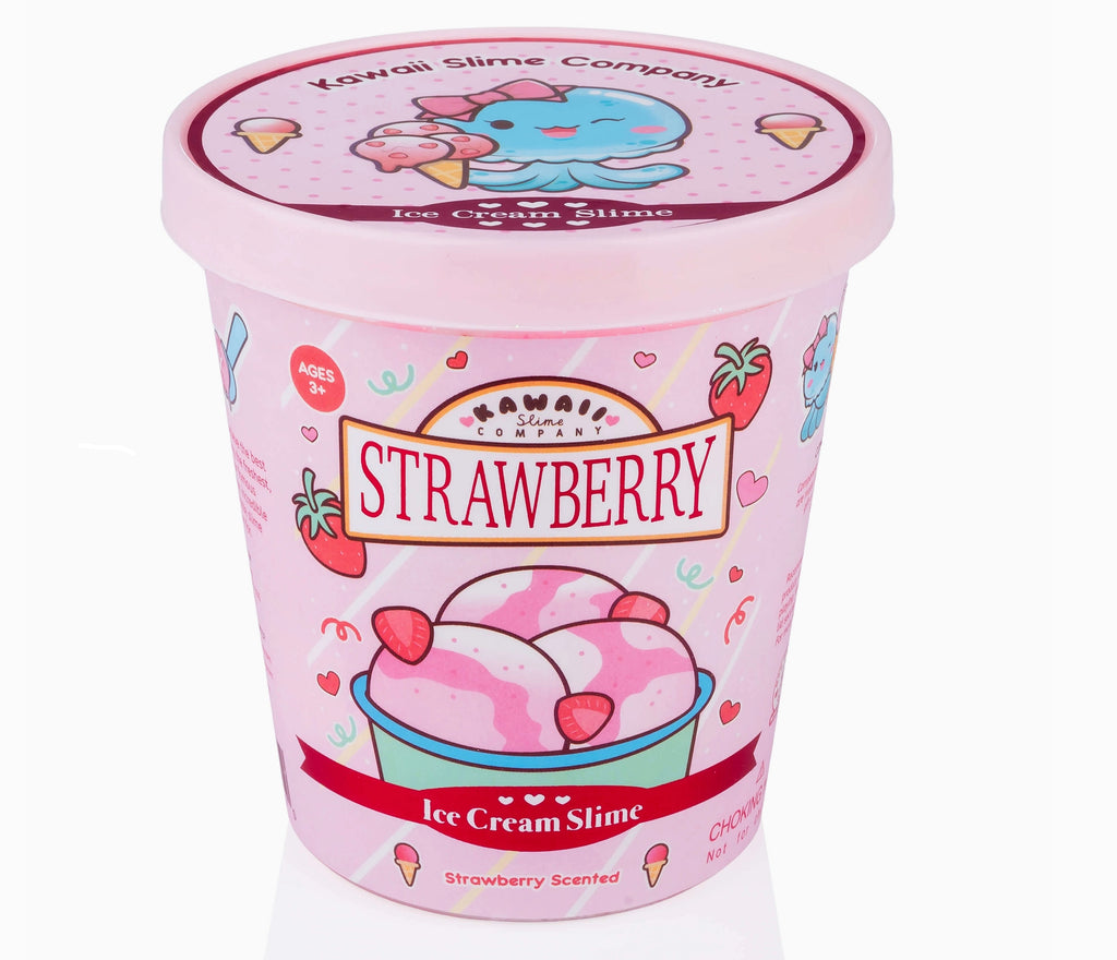 YES it's SLIME! This Strawberry scented Ice Cream Slime is every ice cream lovers dream. They look as accurate to real ice cream you won't believe your eyes... or your nose! Every flavor was carefully curated to have the most accurate aroma of REAL ice cream to take your senses on an adventure to your favorite ice cream shop, enjoying your favorite ice cream with your loved ones. Each ice cream pint starts out with our famous "Cloud Creme" Slime base and then we tailor each flavor to have a slightly different texture than the next, that way you won't get bored trying out other flavors! Our ice cream pints holds it shape so well you can even "scoop" it to form a realistic looking ice cream. Each Pint is enough Slime for a couple kids to enjoy, perfect for that Slime birthday party celebration. Slime Volume - 8 oz