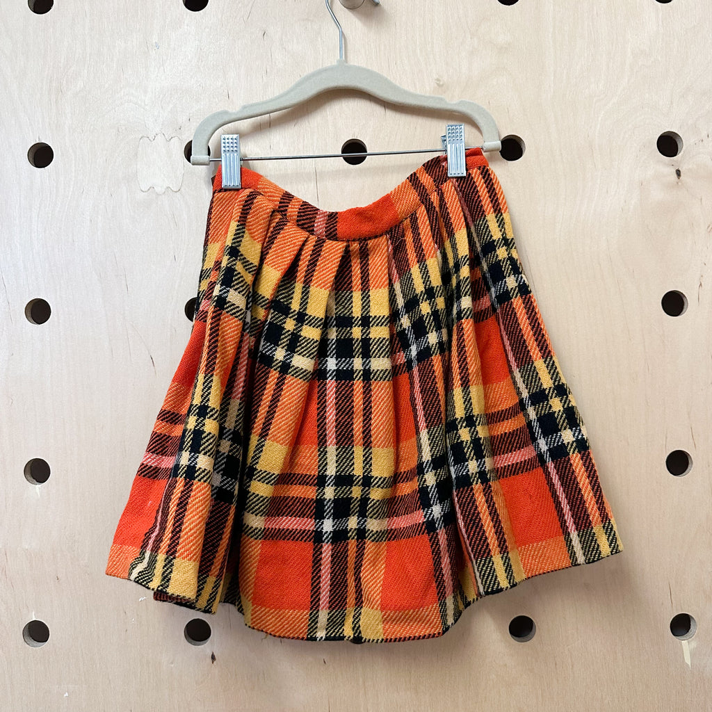 Vintage 1960s Orange Plaid Tweed Wrap Skirt / 8-10 (as is)