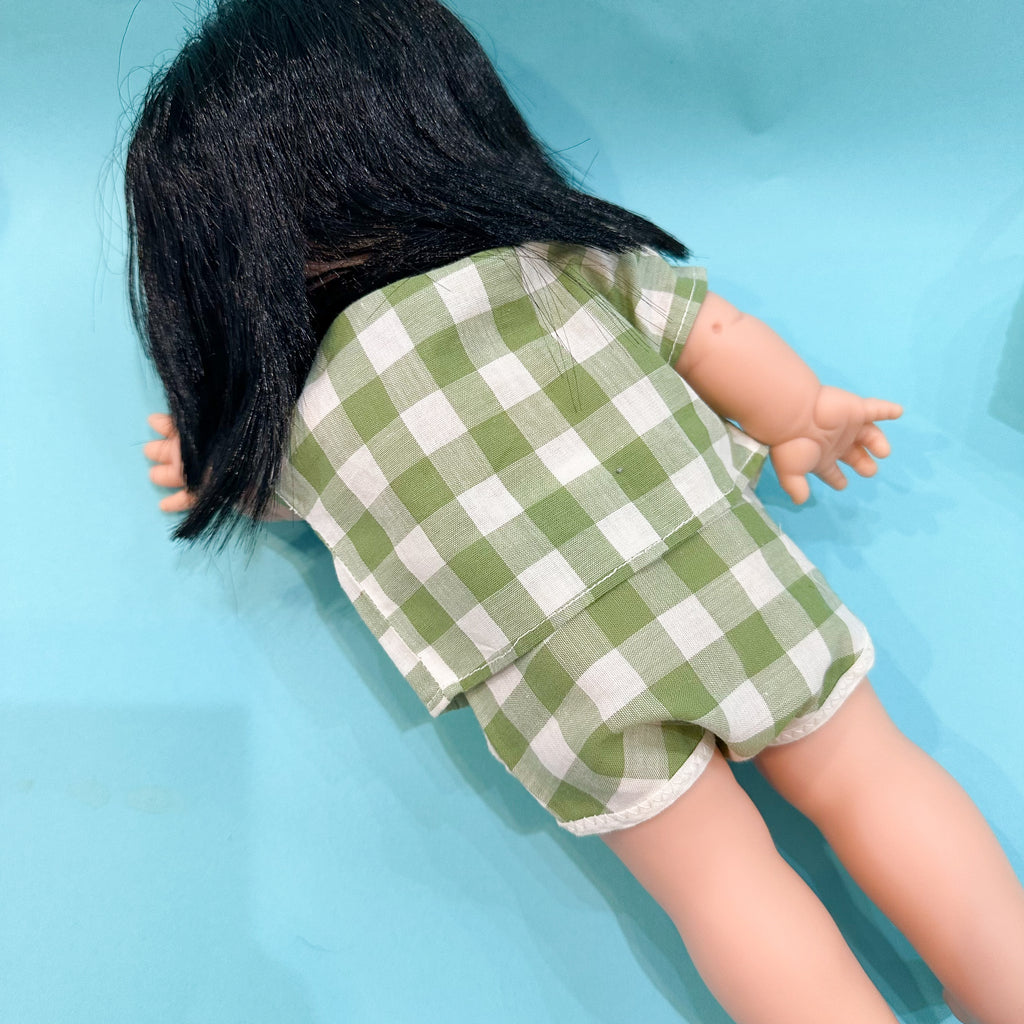 Vintage Doll Green Gingham set / fits Minikane Gordis Doll