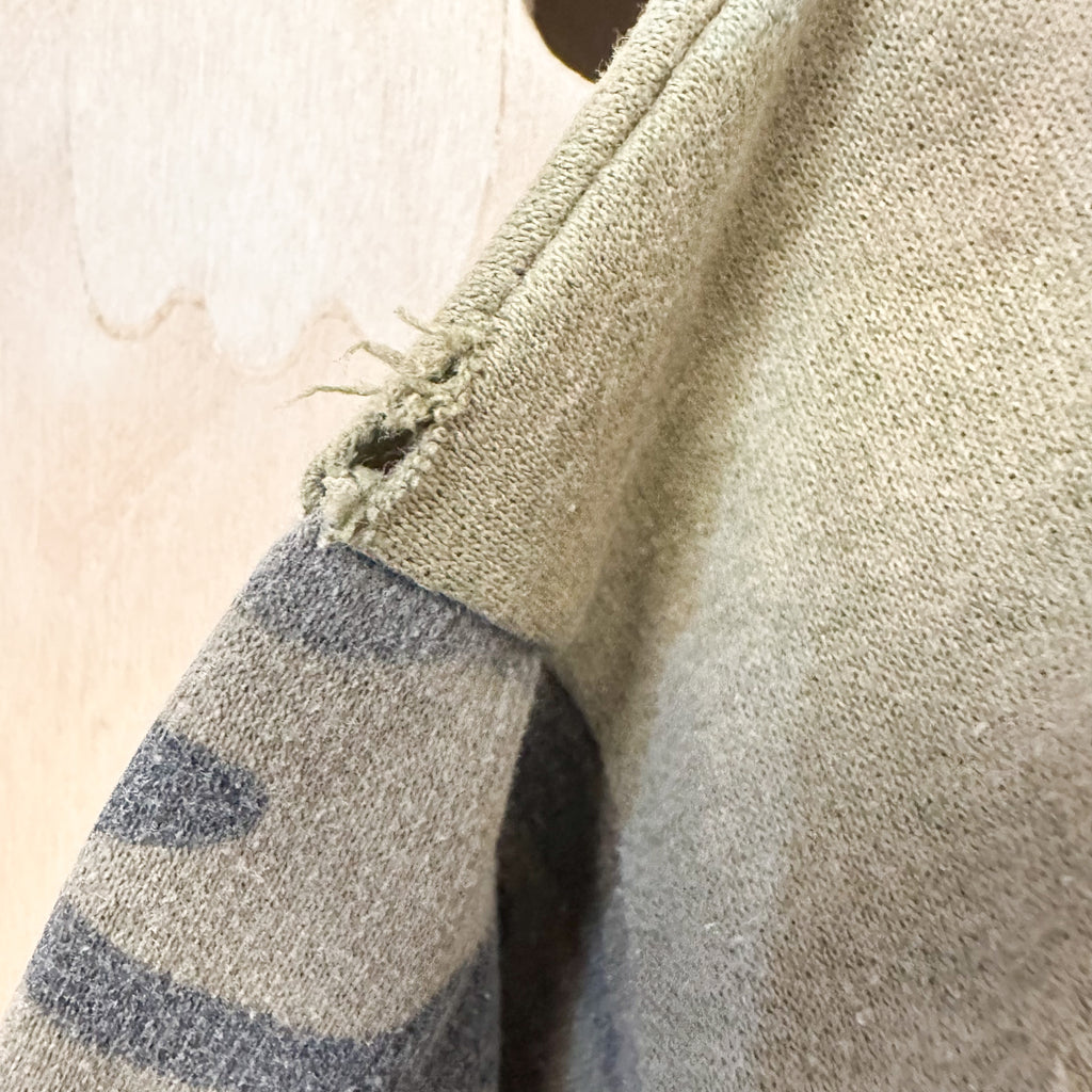Condition: small seam separation/hole at the shoulder.
