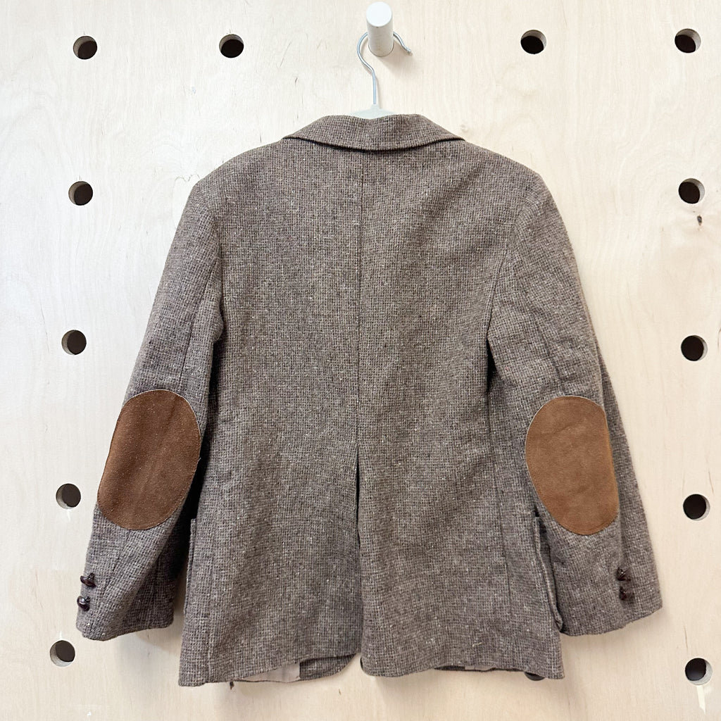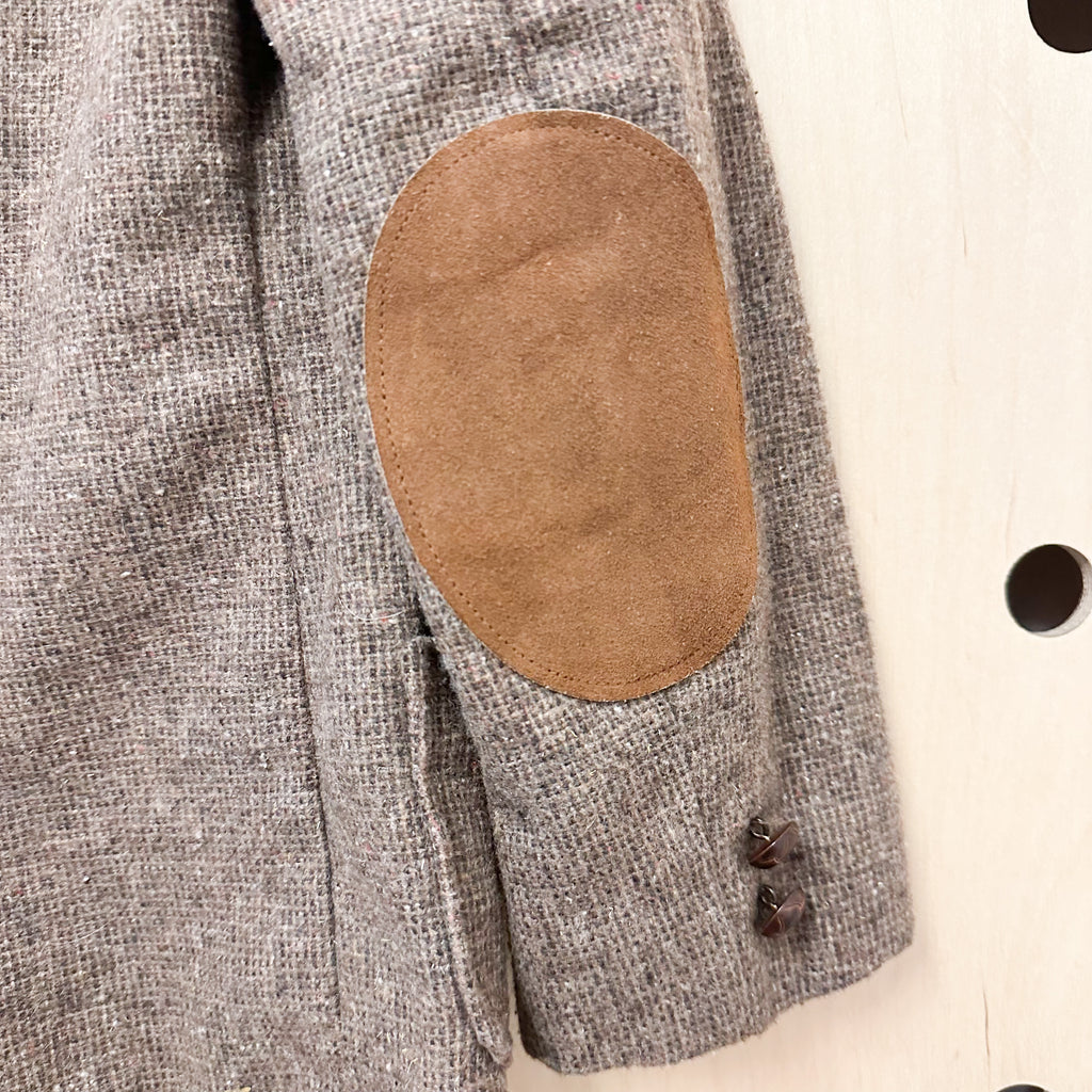 Vintage brown tweed blazer with suede elbow patch.