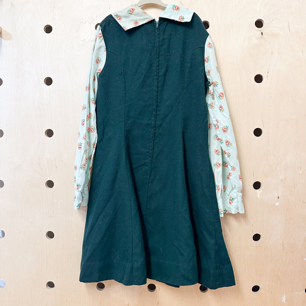 Vintage 1960s Mint & Dark Green Dress / 12yr