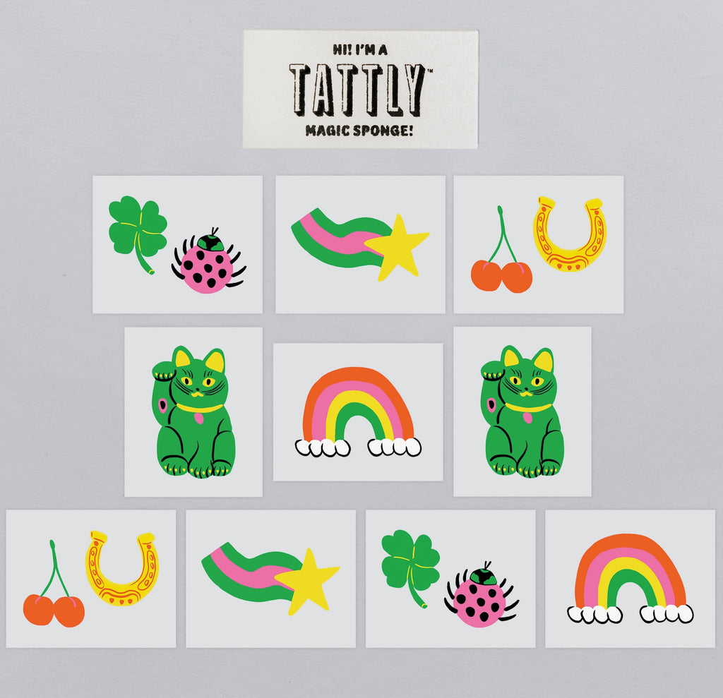 The Lucky Charms Tiny Tin is a temporary tattoo product from Tattly. This delightful piece of wearable art is made with high-quality, vegan, cruelty-free ink that lasts for 2-4 days. It's water-resistant, suitable for all ages, and designed to create joy. Founded in 2011 by Tina Roth-Eisenberg, Tattly has transformed the temporary tattoo space, paying over $1.5 million in artist royalties. Get ready to wear your art with Tattly!