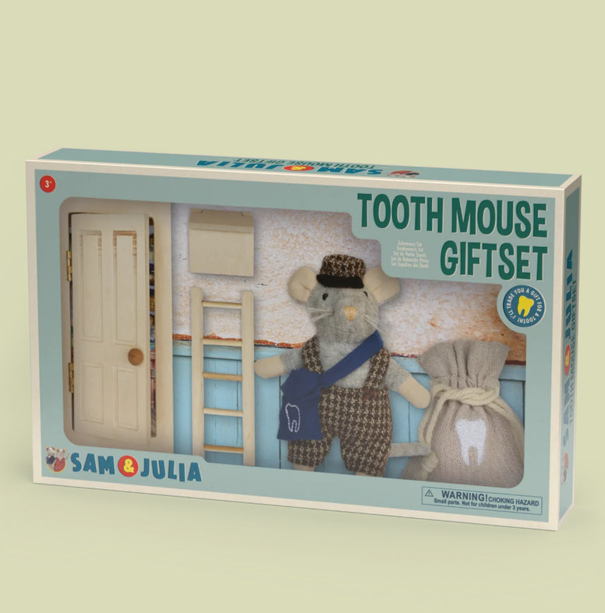 Turn your child's first wobbly tooth into an exciting adventure. The Tooth Mouse Gift Set transforms the experience of losing teeth into something children eagerly look forward to. Just mount this adorable mini door on a baseboard, and when your child loses a tooth, they can place it in the little mailbox for the Tooth Mouse. The next morning, they'll discover the tooth has been replaced with a cute gift bag containing a small present like a coin, tiny toy, or special treat! It's a charming alternative to the Tooth Fairy that's perfect for both boys and girls.