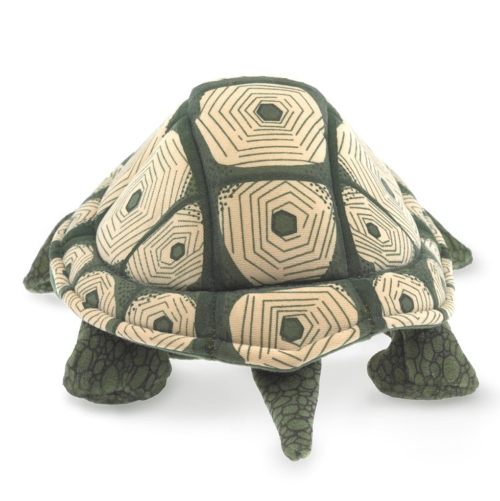 Is this Tortoise looking for a hare to race? This silk-screened, suede-cloth puppet is just one step away from nature. Head & front legs articulate or retract into shell completely. 13” x 9”